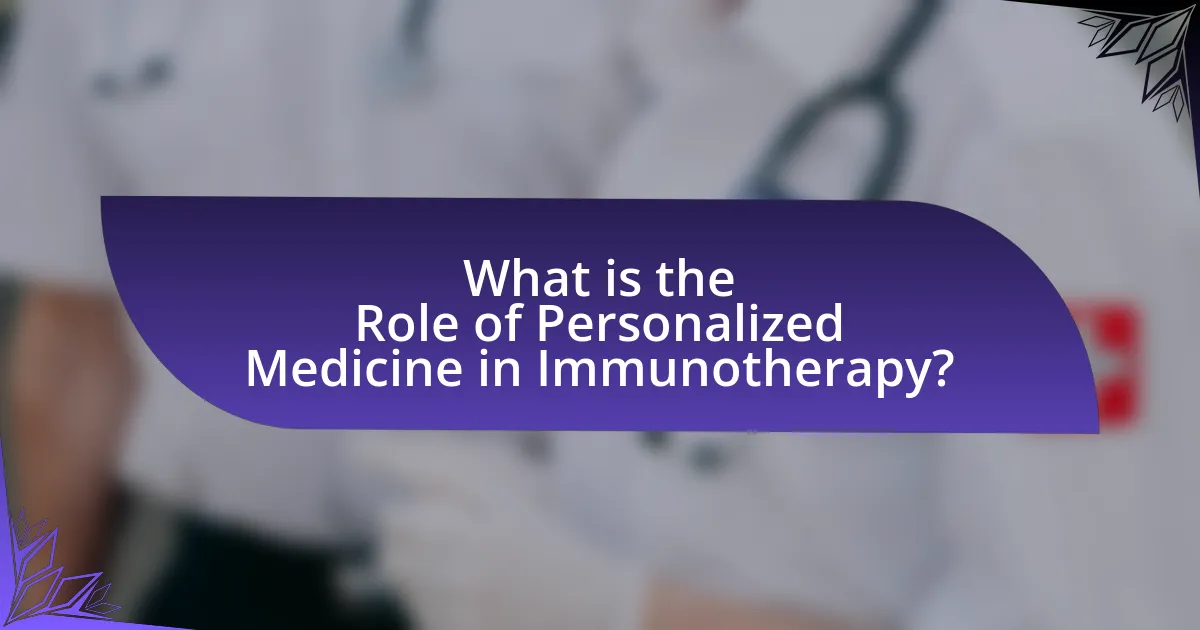 Personalized medicine plays a crucial role in immunotherapy by tailoring treatment strategies to individual patient profiles, which enhances therapeutic efficacy and minimizes adverse effects. This approach utilizes genetic, biomarker, and phenotypic information to identify the most suitable immunotherapeutic agents for specific cancer types or patient characteristics. For instance, the use of PD-L1 expression levels in tumors helps determine eligibility for checkpoint inhibitors, leading to improved response rates. Studies have shown that personalized approaches can significantly increase survival rates; for example, a study published in the Journal of Clinical Oncology demonstrated that patients receiving personalized immunotherapy based on tumor genomics had a 30% higher overall survival compared to those receiving standard treatments.